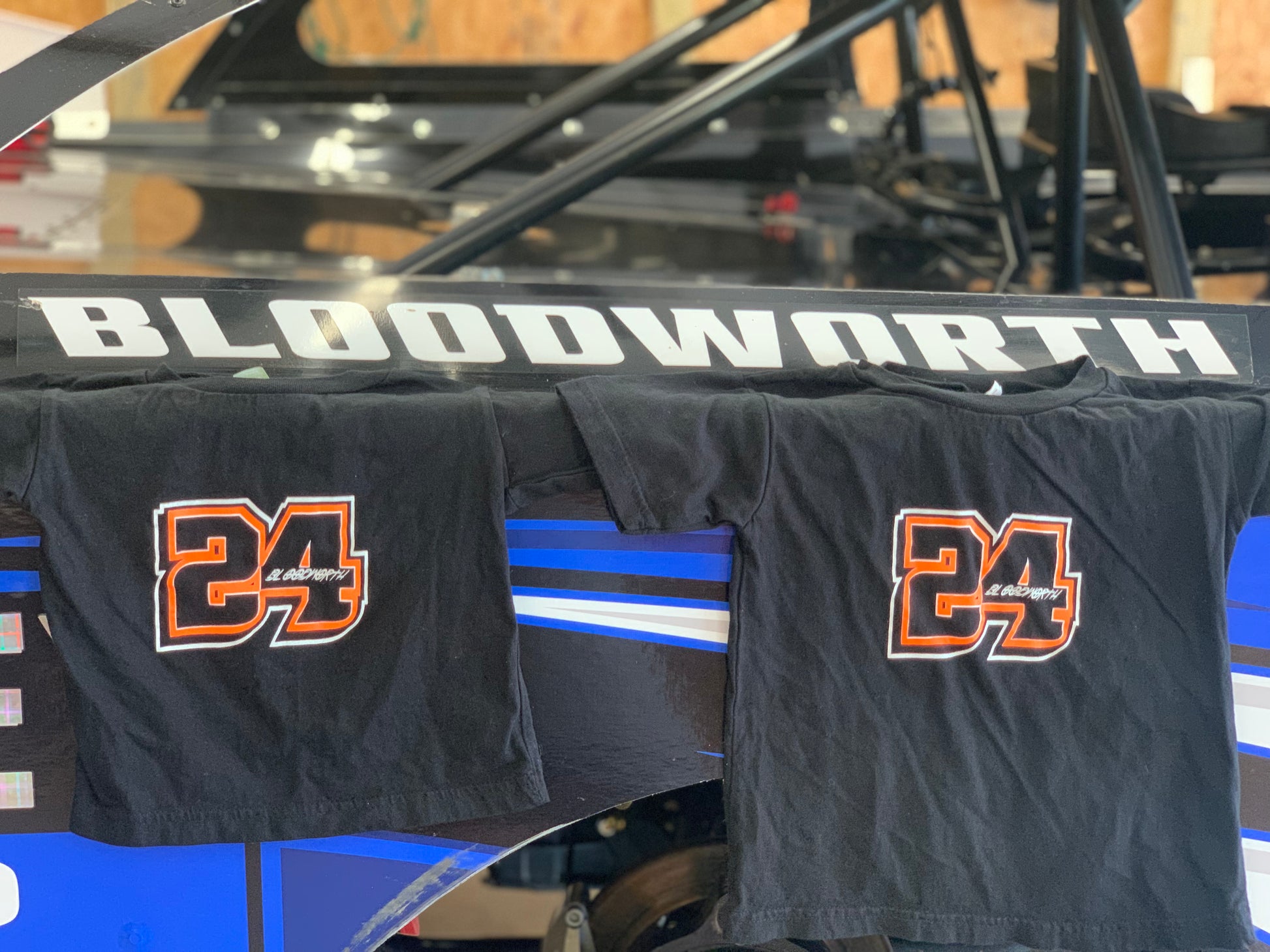 2T or 4T cotton black t-shirt with orange 24 Bloodworth logo